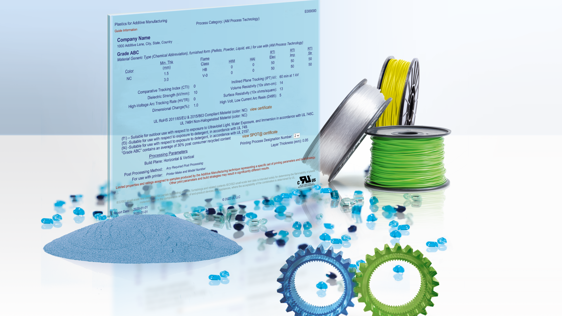 当用于 3D 打印的材料获得 UL 认可的组件标志时,蓝卡将自动签发。认证材料被添加到 UL ProductiQ 和 UL Prospector® 数据库。