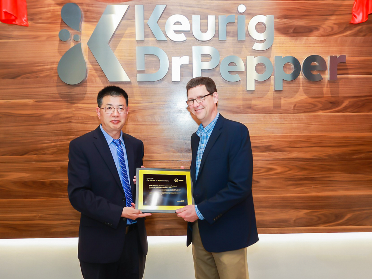 近日,美国纳斯达克上市企业 Keurig Dr Pepper, Inc (以下简称 KDP 集团)正式启用了位于深圳的亚洲研发测试中心(简称 KDP ATC)。UL Solutions 副总裁、全球消费电子与医疗事业部总经理于秀坤一行受邀出席开业典礼,向 KDP ATC 颁发了 UL WTDP 实验室资质证书。