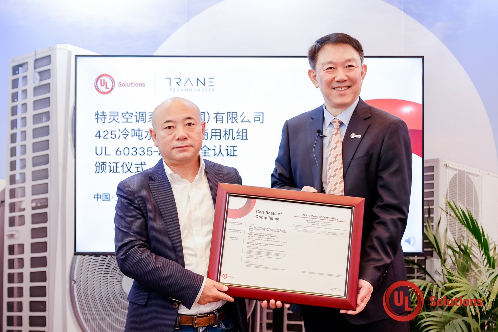 UL Solutions授予特灵空调系统(中国)有限公司425冷吨水冷空调商用机组UL 60335-2-40安全认证证书
