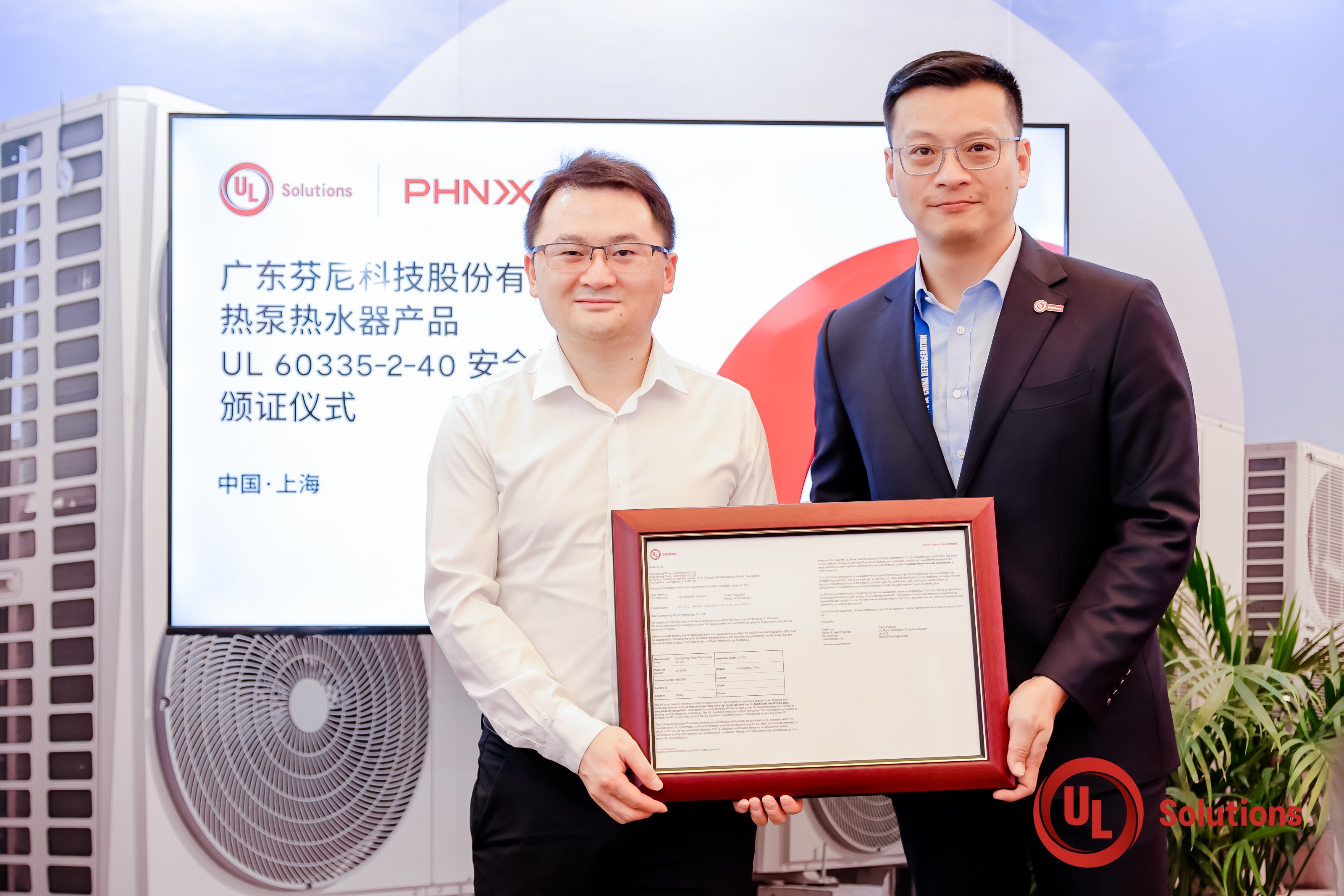 UL Solutions授予广东芬尼科技股份有限公司热泵热水器产品UL60335-2-40 安全认证证书