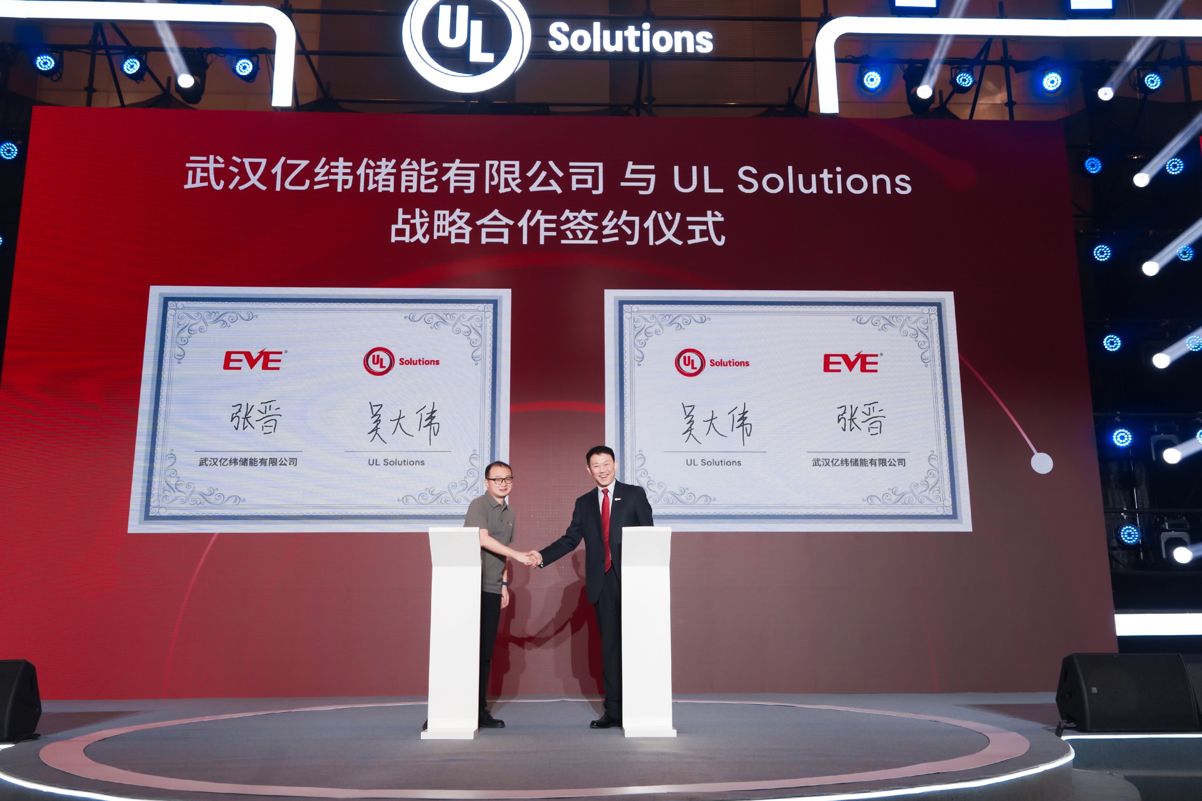 大会期间,UL Solutions与武汉亿纬储能有限公司达成战略合作,举行重要的合作备忘录(MOU)签署仪式。UL Solutions全球副总裁,中国大陆和香港地区总经理吴大伟,惠州亿纬锂能股份有限公司储能研究院工程研究所所长张晋出席。