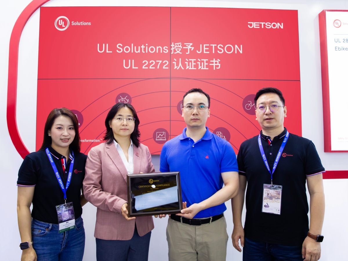 JETSON成立于2012年,其使命是通过创新电动车产品系列,如电动滑板车、电动自行车、电动平衡车 等,激发创造力和探索。此次UL Solutions授予JETSON UL 2272认证证书,表明JETSON产品已经符合美国市场的相关监管要求 ,同时将助力提高产品在国际市场的认可度和竞争力。