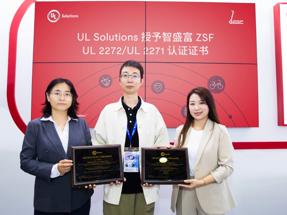 UL Solutions授予智盛富 ZSF UL 2272/UL 2271认证证书