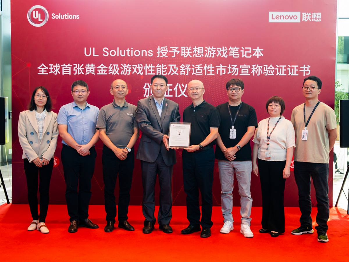 UL Solutions研发了游戏性能及舒适性(Gaming Performance and Comfort)市场验证服务。联想是第一家选择UL 的游戏性能及舒适性(Gaming Performance and Comfort)市场验证服务的PC品牌商,并且获得了UL全球首张黄金级证书,充分说明了联想对用户真实需求的重视,以及对UL Solutions的认可。