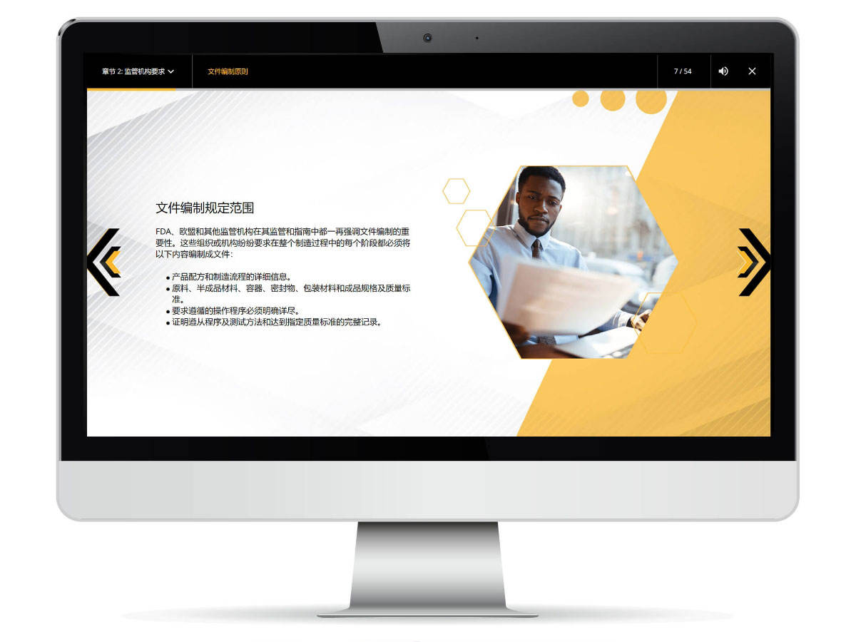 从机器操作到文档管理规范以及任何其他流程或法规,针对多种主题开发基础培训课程。我们努力帮助您的内容包含有按您想要呈现的知识所制定的相应教学策略。(例如事实、概念、原则或问题解决)
