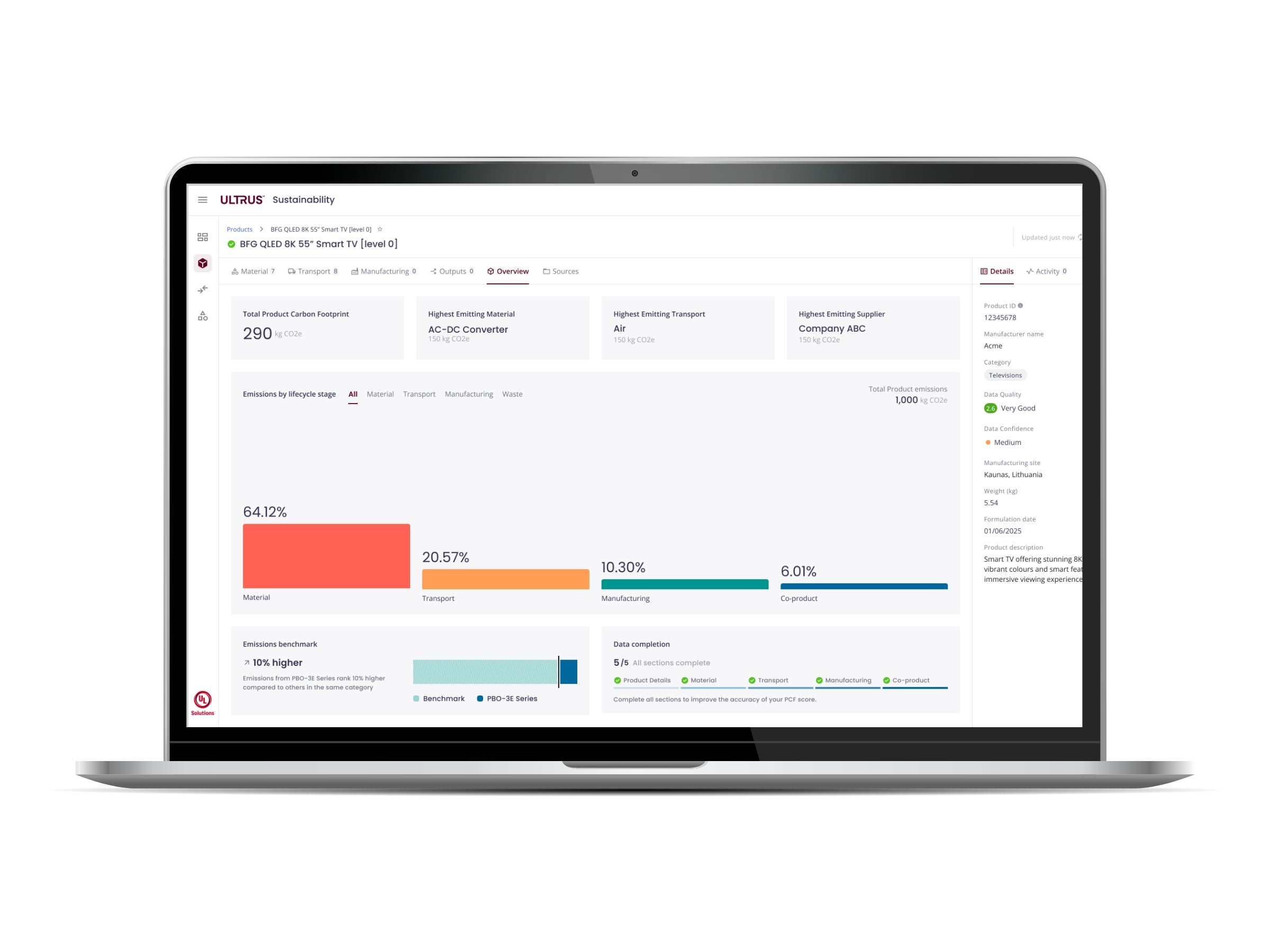 ULTRUS UL 360 软件具备超越基础计算的 PCF 功能,可协助组织了解产品排放成因并明确后续行动方向。它专为供应链可持续性实践而设计,可处理来自多源、多格式且细节程度各异的数据。