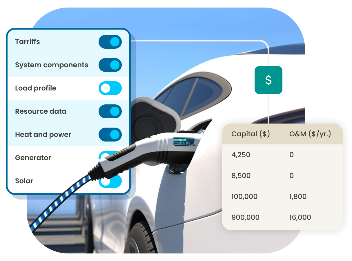- 利用专业的现场发电与储能建模,增加电动汽车充电收入并节约能源