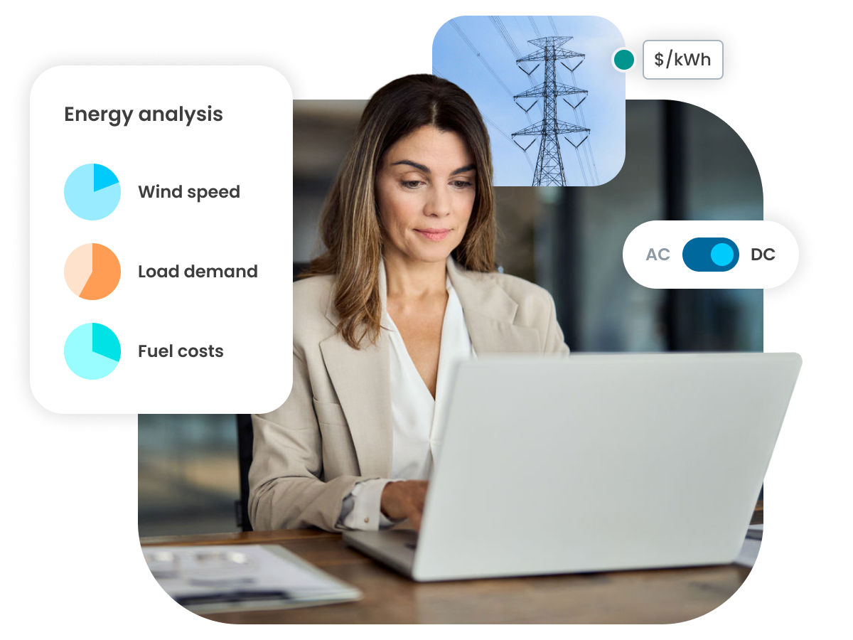 - 助力识别更具韧性和成本效益的系统配置,针对当前和未来的条件优化您的设计,并平衡微电网的成本、效率和可靠性。