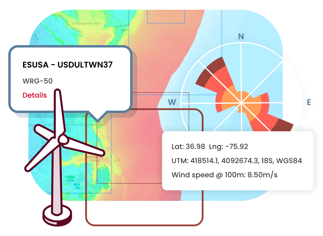 - 具有用户自定义轮毂高度叠加层的交互式风图:助力开发人员在不同轮毂高度上可视化风力资源,以优化风机布局。