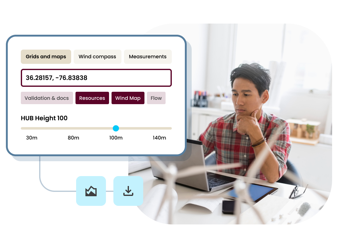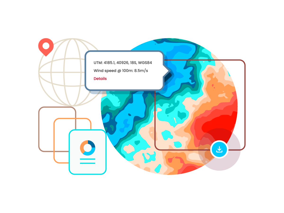 Windnavigator 提供 200m 分辨率的风图、长期重新分析数据集(MERRA-2、ERA5、WRF)以及兼容 GIS 的导出格式,可轻松集成到风能建模软件中。
